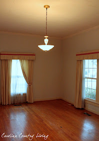This is a 2-bedroom, 1 bath house and measures about 1,200 square feet. That means all the rooms are well-sized and the living room is no exception. It has high ceilings and a great light fixture that you can't see well because I took the photo with the light on. Sheesh! This house originally had heart pine floors, but in this room and in one of the bedrooms, oak planks cover the original flooring.
