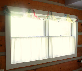 But there's a beautiful view of the woods on this side of the house and its keeps the space from being too dark. Plus, how pretty does that bunting made of vintage hankies look draped across the top? My dear friend, Sara, made it and it just so happened to be the right length to span this window. Meant to be!