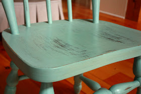 The non-matching chair in the room is a slipper chair that came from my childhood bedroom. Reupholstered in Waverly's Rose Sonata in Robin's Egg, and a coat of paint added to it's turned wooden legs (capped in casters!), I think it adds an element of older English style.