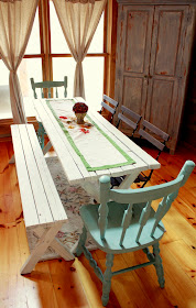 Since finishing the furniture set, which was an auction find, I polished the room by white-washing the horizontal tongue-and-groove boards on the back wall with Minwax's Pickling Stain.