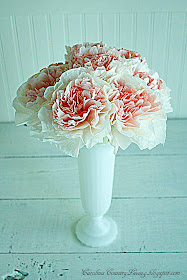 Among other tasks related to the breakfast, I volunteered to make centerpieces.  Since the weather has been so wacky and we weren't sure what flowers might be available from members's gardens, and since the cost of real flowers add up quickly for a non-profit organization, I said I'd make coffee filter flowers instead.