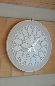 A few weekends back, my son and husband went on a boys-only surf fishing trip to the Outer Banks. With all that glorious free time, I hit yard sales, hung out with girlfriends, laid out and read, made a doily clock, and even had time to try my hand at sign painting.