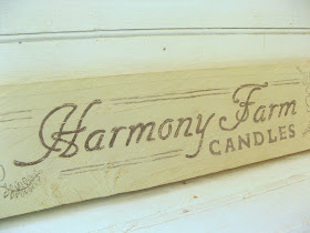 At first, I wasn't sure what the sign should say; I wanted something with meaning and something that was unique. I finally arrived upon painting my Etsy shop blog header since I keep all the made candles for Harmony Farm Candles in the craft room.