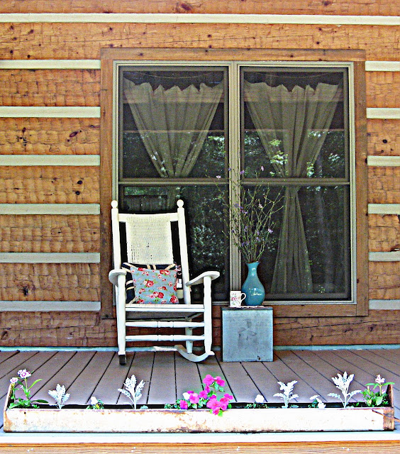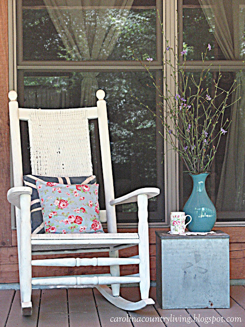 To the right of that window is the doily clock I made last month. The shelves, originally unpainted from Michael's, now sport jaunty coats of paint and hold frames and knick-knacks.